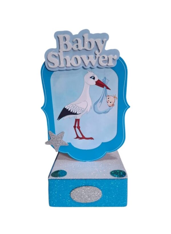 ADORNO ECO CON BASE CIGÜEÑA CELESTE BABY SHOWER