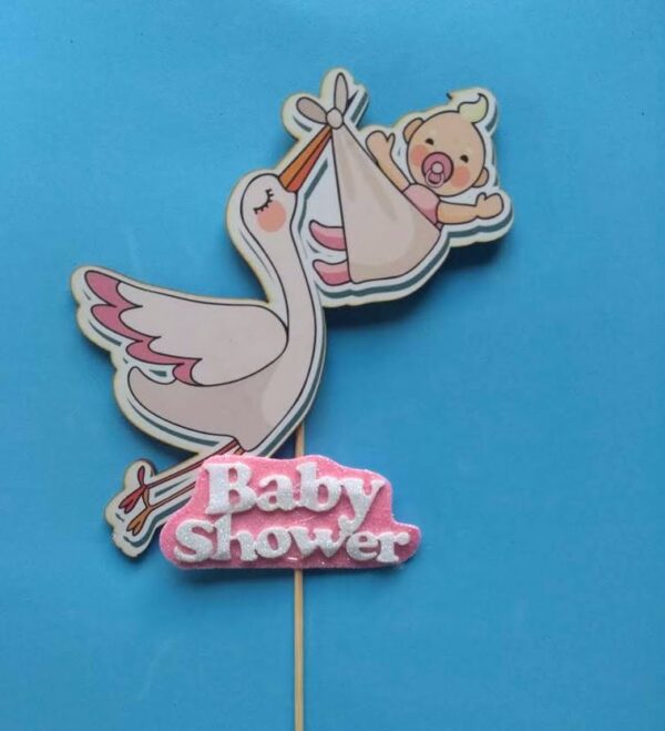ADORNO MDF PINCHE CIGUEÑA BABY SHOWERS ROSA