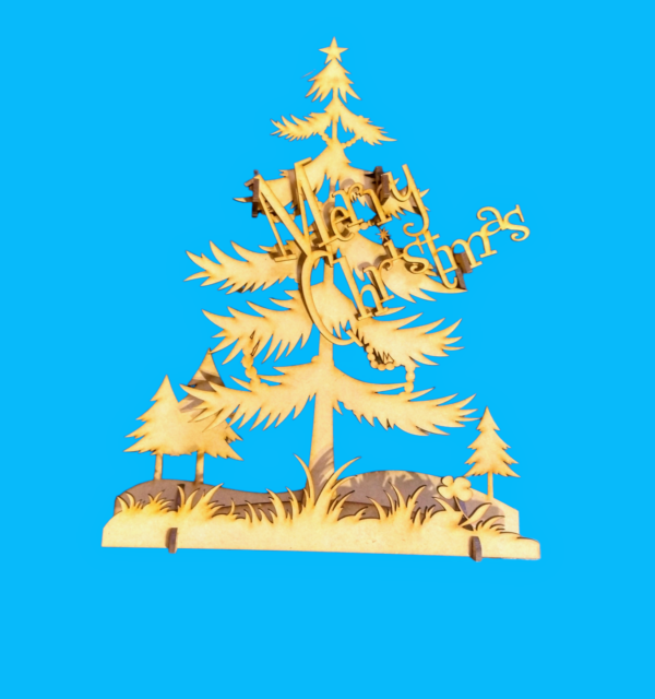 NAVIDAD ARBOL 3D MDF CRUDO MERRY CHRISTMAS