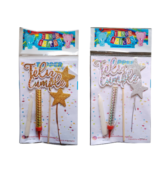 CONTIENE 5 ARTICULOS -FRASE, VELA, BENGALA Y 2 ESTRELLAS GIBRE