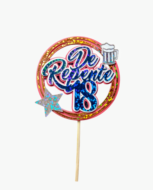 TOPPER HOLOGRAFICO DE REPENTE 18 CON CERVEZA
